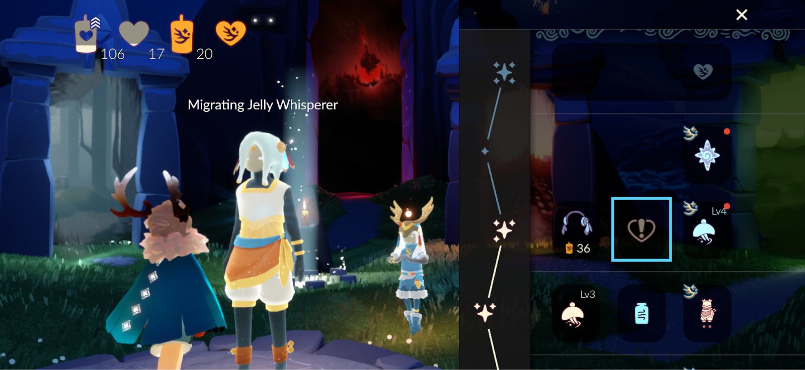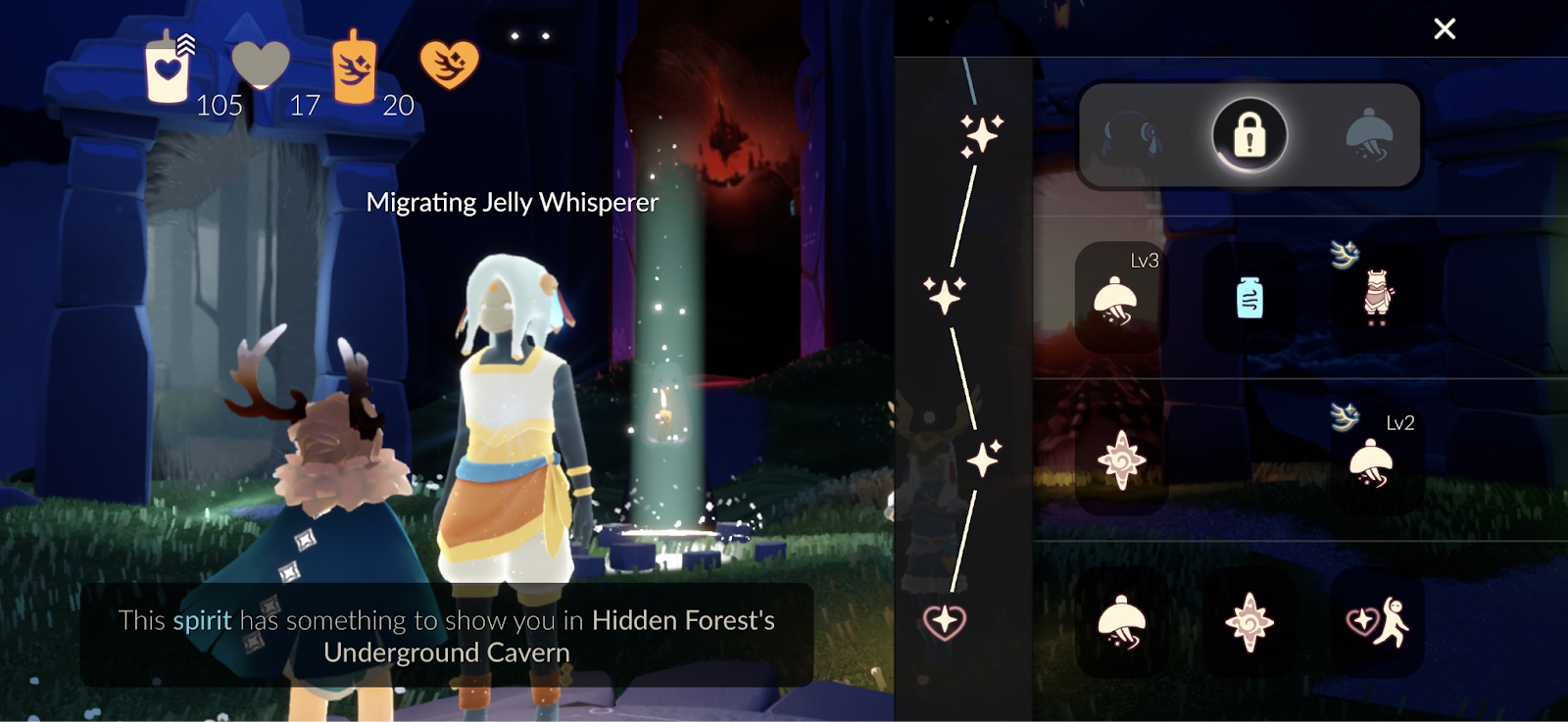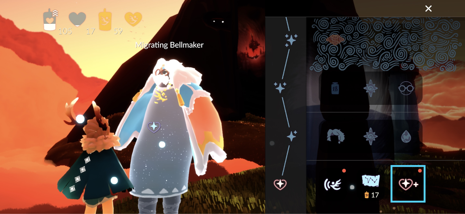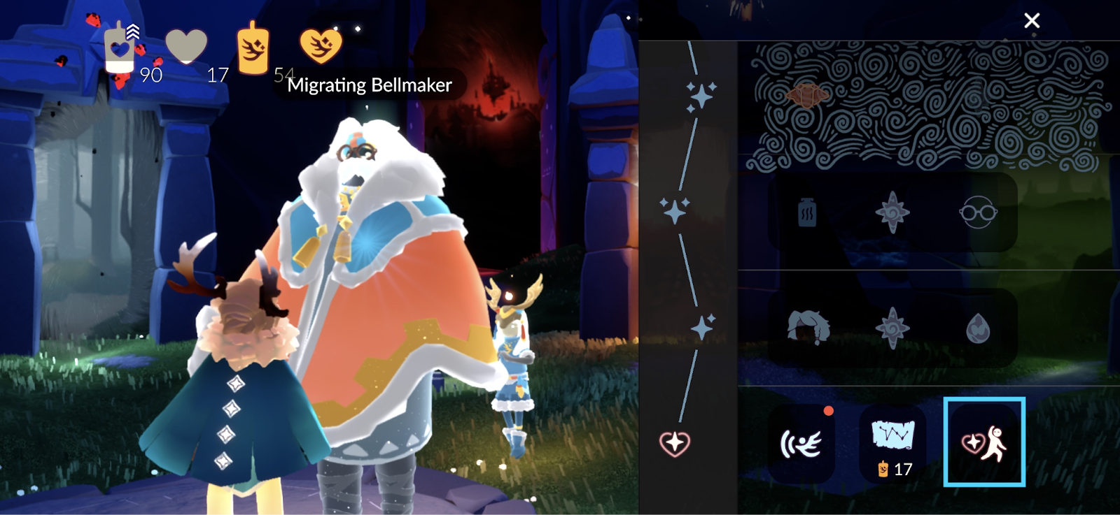 You can access a spirit’s Friendship Menu by interacting with the spirit in the realms or through the season’s constellation via the Constellation Table in Home or Aviary Village.
