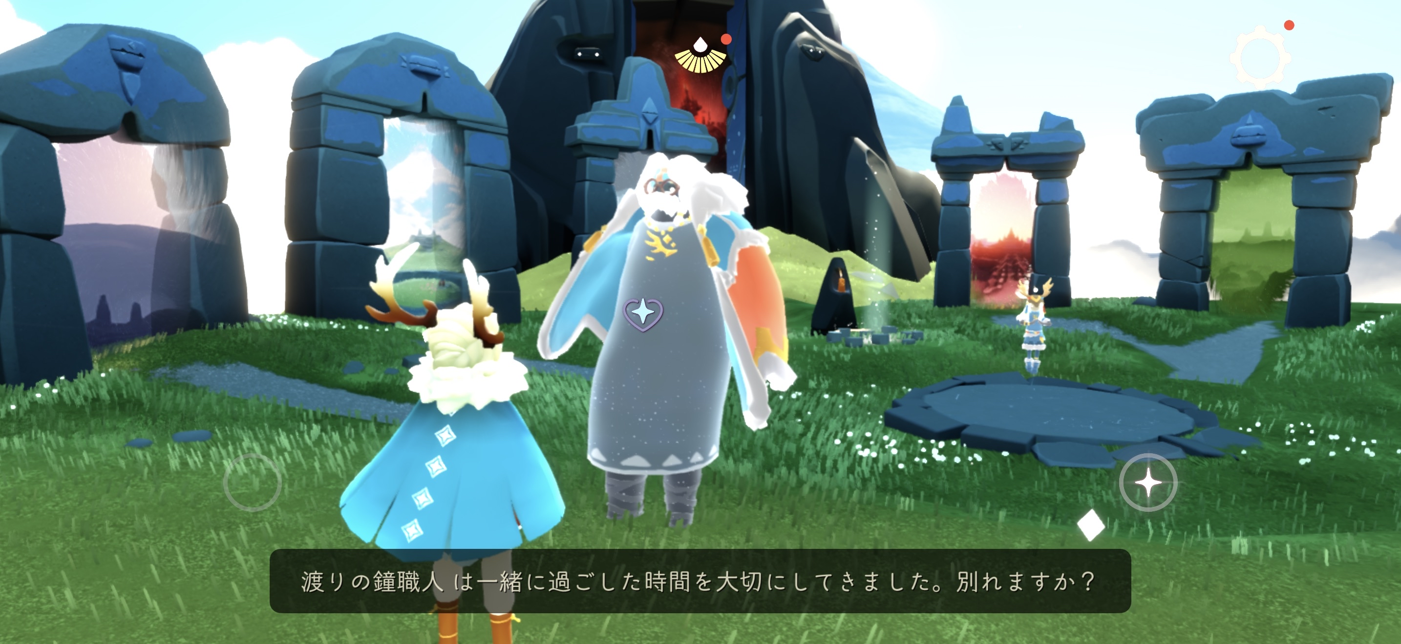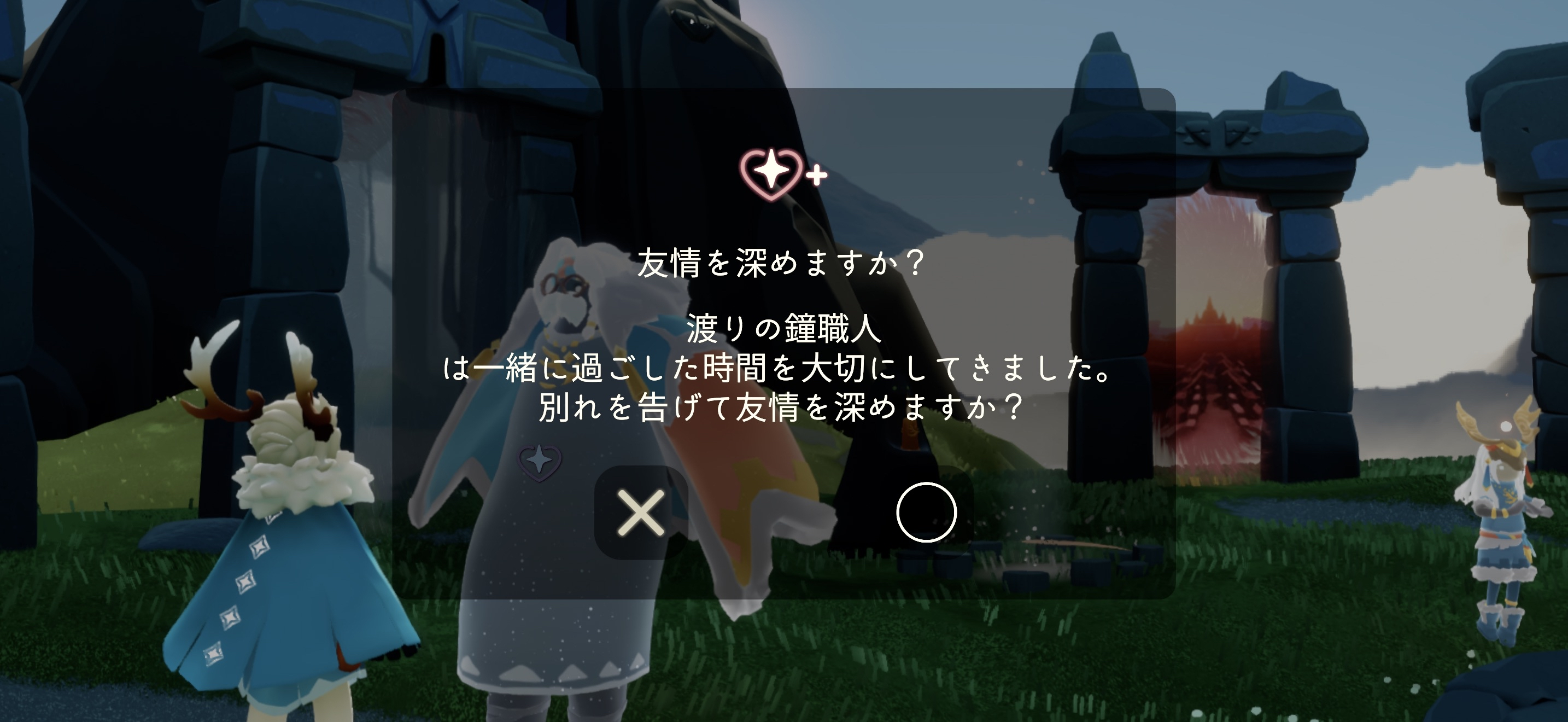 表示されたアイコンをタップすると、お別れして友情度を更新するか確認されます。お別れすることを了承すると、友情度を示す線が満たされ、精霊は去っていきます。