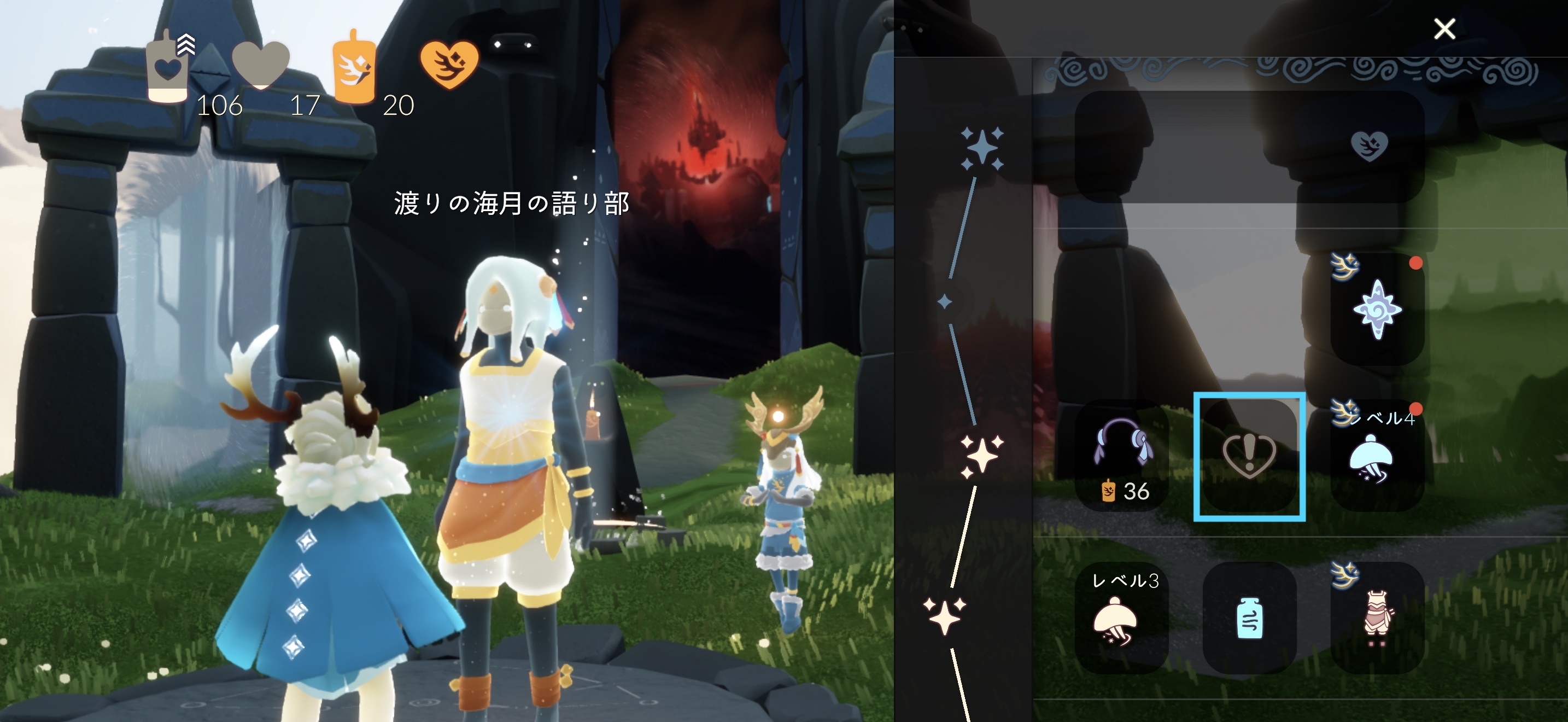 両方の良いとこ取り:キャンドルの消費とおとも精霊たちと時間を過ごし友情度を深める方法どちらも使用しアイテムをアンロックしていく。