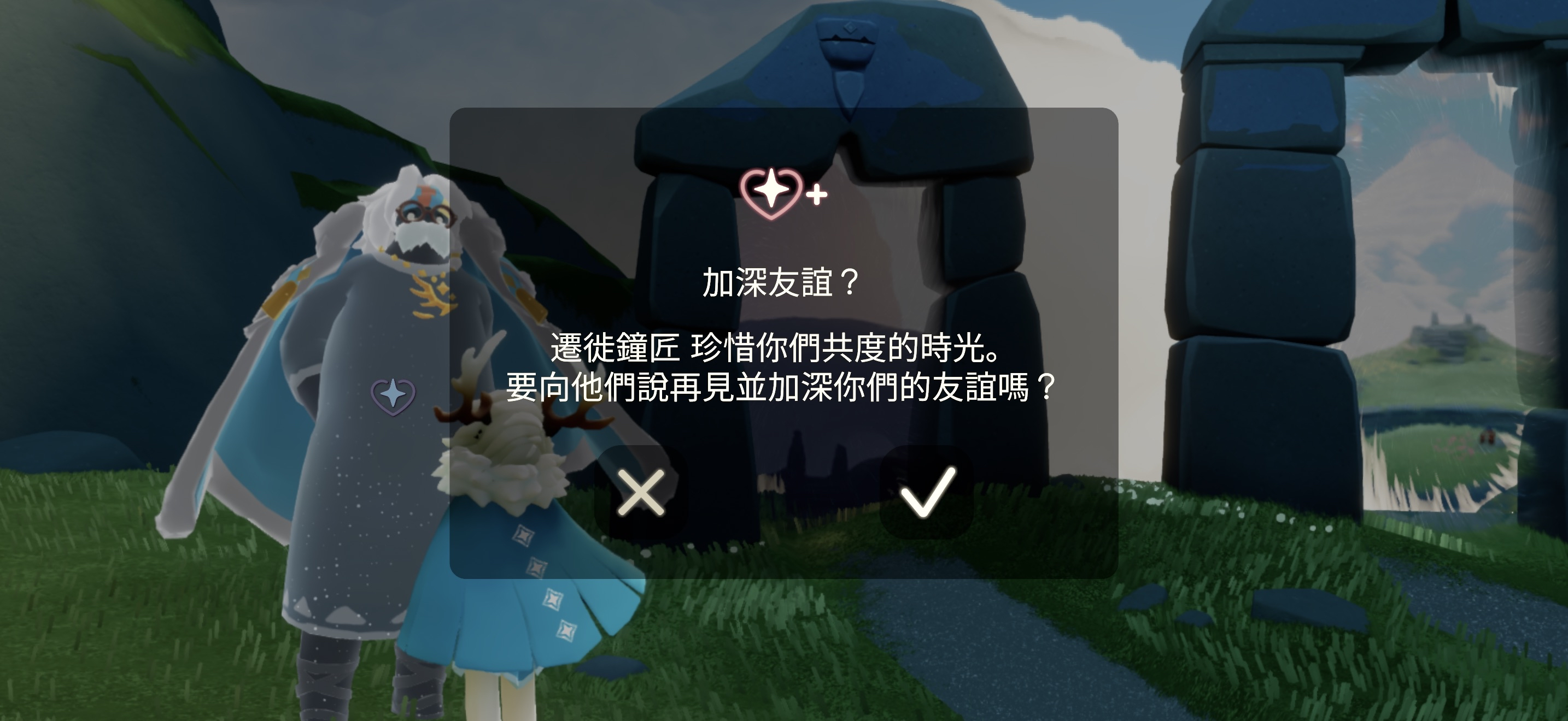即使先靈已準備離開,你仍可繼續與祂相處,但在正式道別前,不會獲得任何友誼指數。