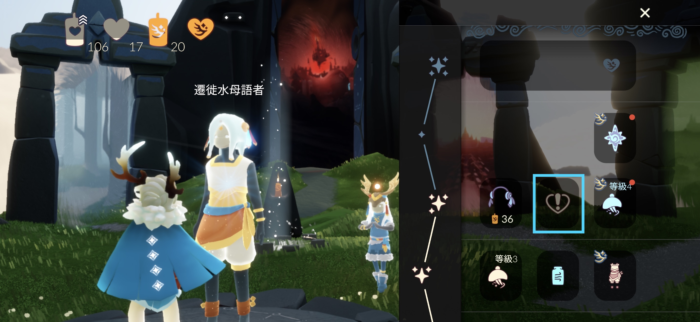 雙線並行:同時使用蠟燭並花時間陪伴先靈,雙管齊下提升友情、解鎖物品。